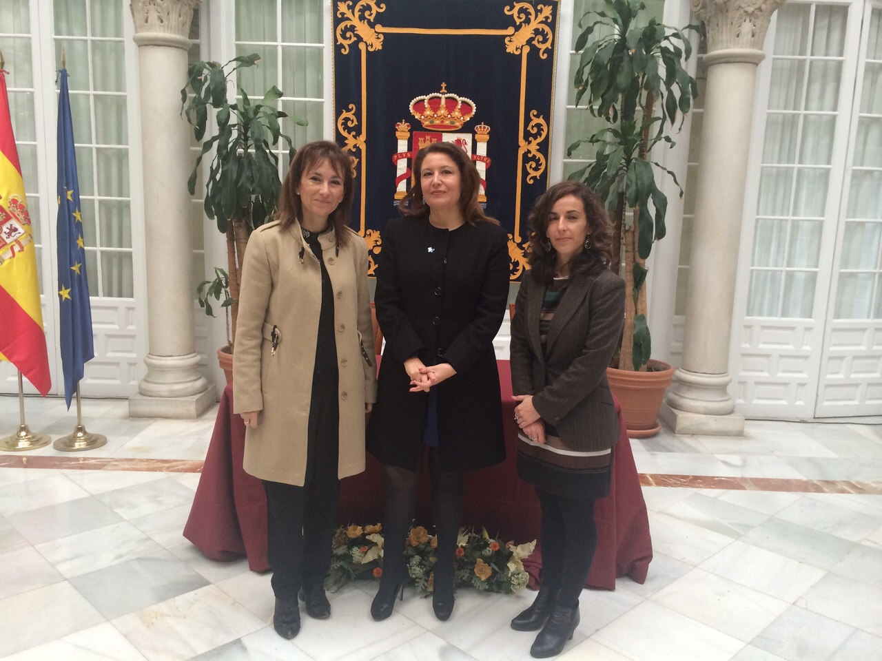 Mijas, 19 de diciembre de 2014.- La concejala de Igualdad en el Ayuntamiento de Mijas, Carmen Márquez, y la concejala en el Consistorio mijeño, Pilar Conde, se han desplazado hoy a la Delegación del Gobierno en Sevilla para asistir al acto de adhesión al convenio de colaboración contra la violencia de género Viogen. Se trata de una iniciativa del Ministerio de Igualdad que apuesta por luchar contra esta lacra social reforzando la colaboración policial entre los distintos cuerpos de seguridad.