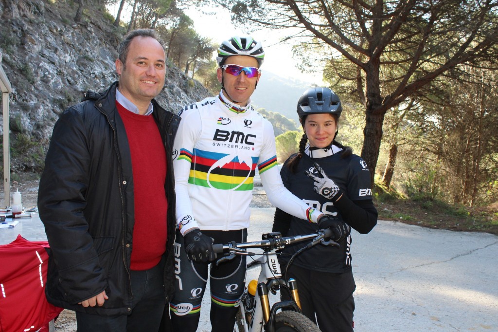 El campeón del mundo de mountain bike, Julien Absalon, prueba en la sierra mijeña las nuevas bicis de la empresa especializada Fox