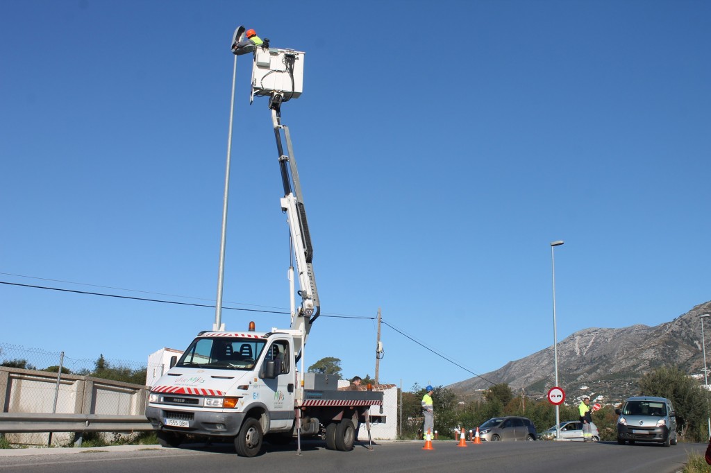 El Ayuntamiento instala nuevos equipos de iluminación en las farolas de la carretera de Mijas