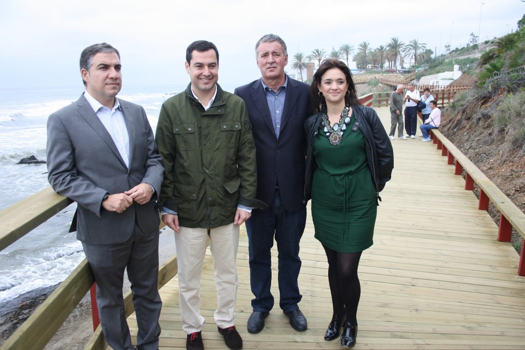 El presidente del PP-A visita la senda litoral de Mijas y halaga la colaboración entre gobiernos los populares del Ayuntamiento y de la Diputación