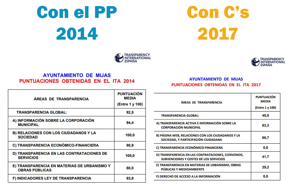 Los populares están asombrados de que Juan Carlos Maldonado (antes PSOE, ahora C’s) saque pecho de este resultado cuando se autoerige como paladín de la transparencia El Ayuntamiento de Mijas, por culpa de la gestión de Ciudadanos, sigue siendo el subcampeón nacional de opacidad, según Transparencia Internacional