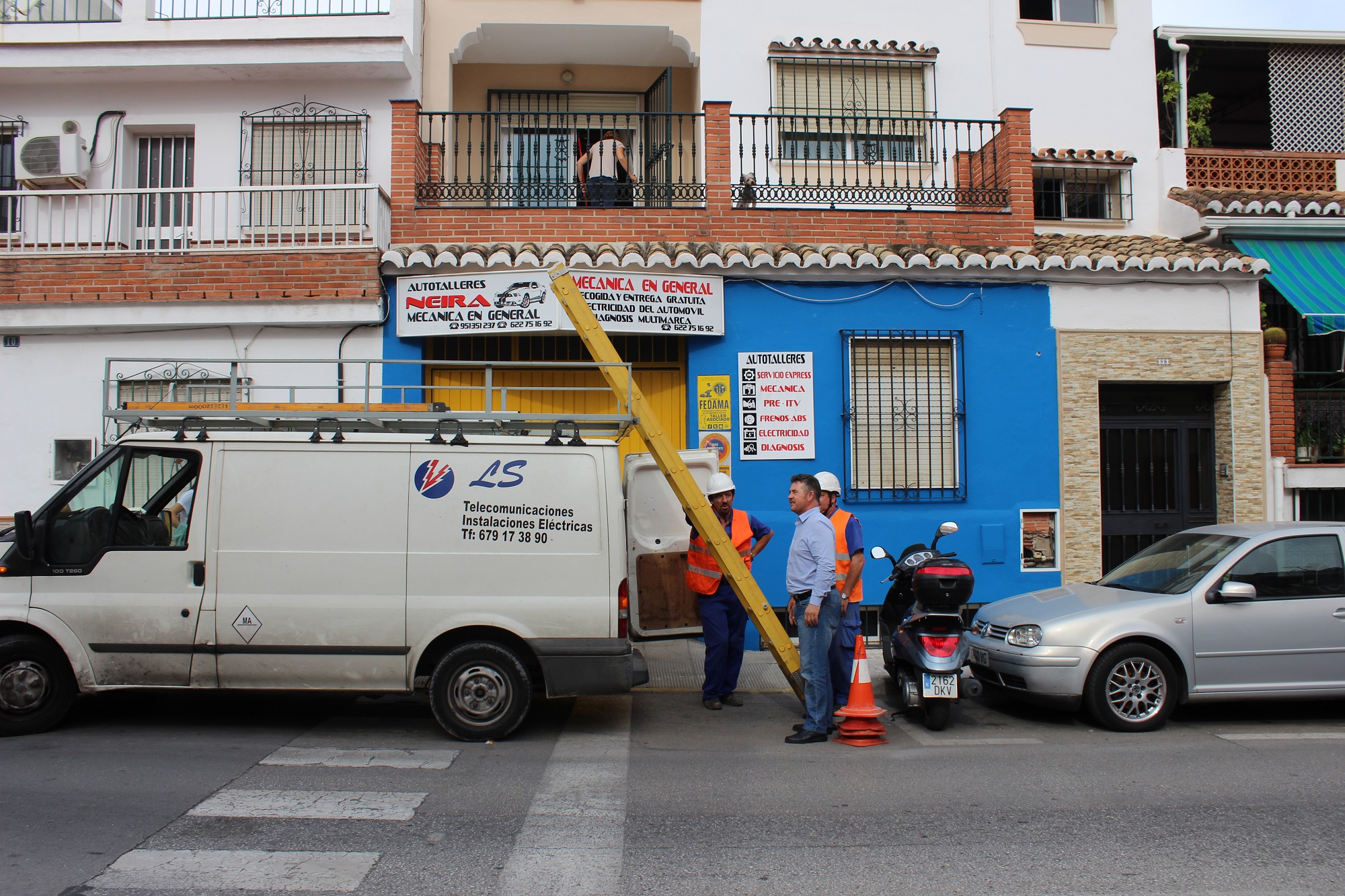 Mijas, 1 de octubre de 2014.- El concejal de Energía y Eficiencia en el Ayuntamiento de Mijas, José Francisco Ruiz Fontalba, se ha desplazado hoy hasta la barriada de Los Santos, en Las Lagunas, para comprobar la marcha de los trabajos de soterramiento del cableado de suministro aéreo de la calle San Cristóbal.