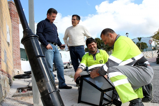9c3f2d4273a2aaea240cf417ce0a4978_LEl concejal de Energía y Eficiencia en el Ayuntamiento de Mijas, José Francisco Ruiz Fontalba,  visitó el pasado viernes  los trabajos para la instalación del alumbrado público en el entorno del polideportivo de Osunillas. Se trata de una actuación, como indicó el edil, “muy demandada por los vecinos” de esta zona, ya que se trataba de una zona que no contaba con ningún tipo de sistema de iluminación.La intervención se centra en la calle Puerto Pino y consiste en la instalación de nueve farolas. Para ello, los operarios de Servicios Operativos han comenzado a realizar la obra civil para poder asentar los nuevos dispositivos de iluminación. Por su parte, los electricistas del departamento de Energía y Eficiencia serán los encargados de introducir las nuevas líneas eléctricas e instalar las luminarias.En este sentido, Ruiz Fontalba destacó que las labores están suponiendo un ahorro importante para las arcas municipales, puesto que las farolas se han reaprovechado de otros lugares del municipio.“De esta manera, cumplimos con dos objetivos. El primero de ellos, y que es el que ha motivado esta actuación, es solucionar esta demanda histórica de los vecinos de Osunillas, y por el otro, hacerlo con el mínimo coste posible al Consistorio”, manifestó.Así, las farolas, del diseño denominado villa, cuentan con un báculo modelo IEP y con bombillas de halogenuro metálico de 100 vatios de potencia cada una de ellas. Según Ruiz Fontalba, estas podrán estar instaladas y funcionando plenamente a partir de la próxima semana.Igualmente, el titular mijeño de Energía y Eficiencia señaló que, al igual que otras zonas del municipio, el entorno del polideportivo de Osunillas no contaba con ningúna clase de alumbrado público. Algo, que el concejal calificó de “increíble” y que el presente equipo de Gobierno “está solucionado poco a poco” en el resto de puntos del término municipal donde se da esta circunstancia.“Una buena iluminación da seguridad a los vecinos de un barrio cuando cae la noche. Especialmente en puntos como este, que están apartados de grandes núcleos urbanos”, apostilló.