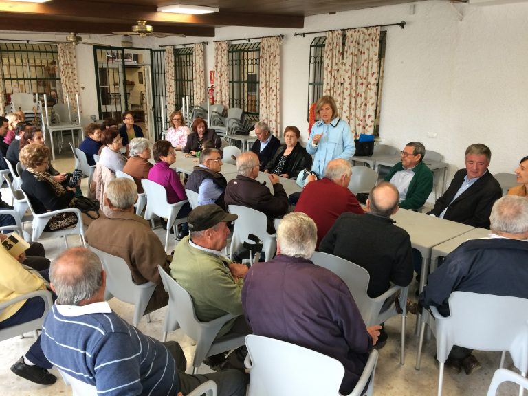 Mijas, 9 de mayo de 2016. La vicepresidenta primera del Parlamento de Andalucía y diputada autonómica por el Partido Popular, Esperanza Oña, ha estado hoy en el Hogar del Jubilado de Las Lagunas de Mijas junto con el presidente de la formación política a nivel local, Ángel Nozal, para explicarle a los miembros de la Asociación de Jubilados Virgen de la Peña en qué situación se encuentra el trámite parlamentario iniciado por el PP a propósito del ansiado proyecto que este colectivo ha demando históricamente, que no es otro que la construcción de una residencia pública de mayores en Las Lagunas.