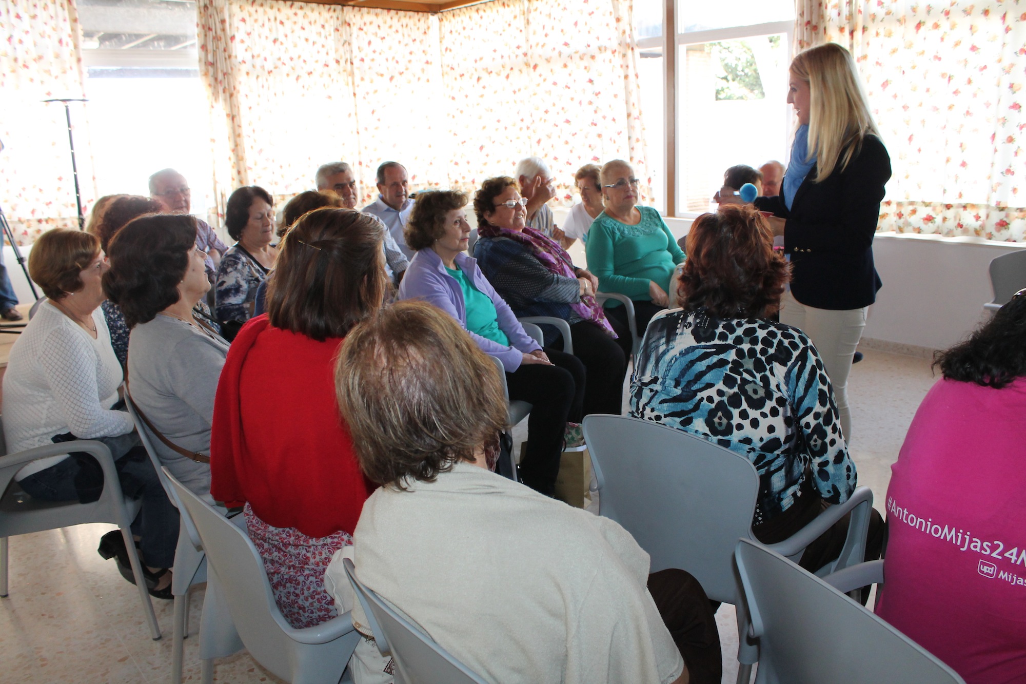 Mijas, 16 de agosto de 2015.- La concejala de Mayores, Lidia Moreno, ha estado hoy en el Hogar del Jubilado de Las Lagunas para reunirse con un grupo de mayores de este núcleo urbano, dentro de los encuentros periódicos que la responsable municipal mantiene con éstos para conocer sus inquietudes, sugerencias y quejas sobre el servicio que presta esta Concejalía. Fruto de la reunión de hoy, Moreno ha anunciado que se vana proyectar todos los domingos películas antiguas.