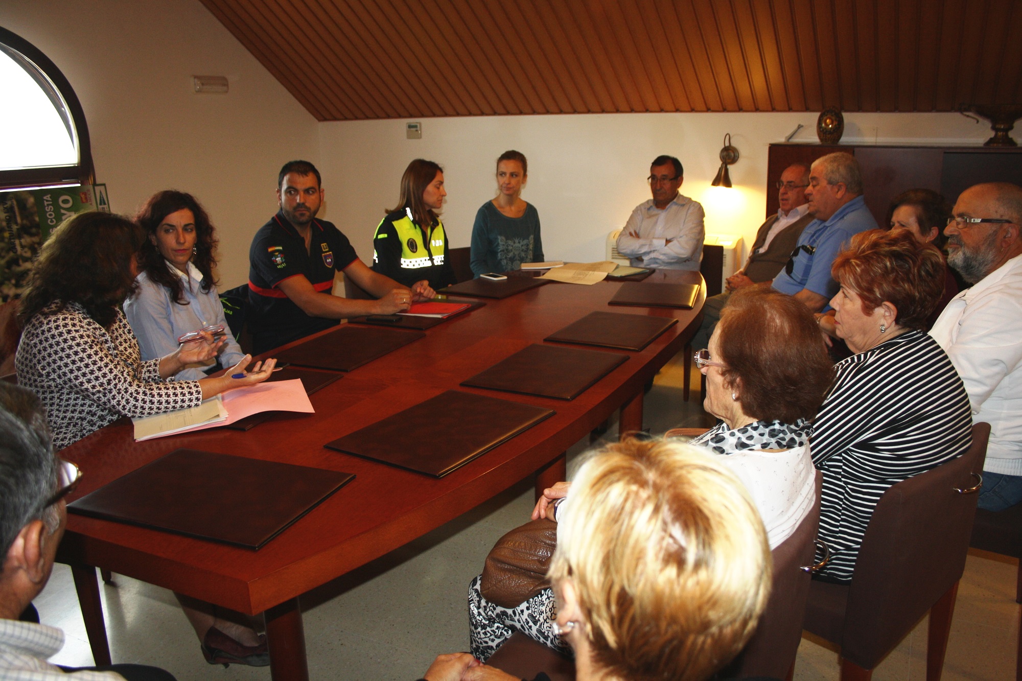 Mijas, 12 de noviembre de 2015. La concejal de Voluntariado, Carmen Márquez, se ha reunido hoy con los voluntarios del programa municipal para jubilados de ayuda en los pasos peatonales escolares. Allí ha anunciado la reanudación del mismo a partir de la semana que viene.
