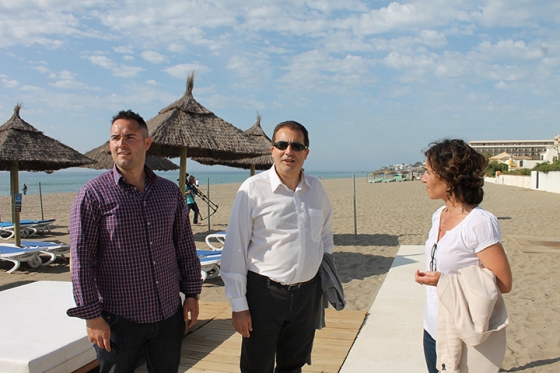 2b038789335c5f97f690e37793701a9e_LLa concejala de Playas en el Ayuntamiento de Mijas, Carmen Márquez, y el ingeniero de la Demarcación de Costas en Andalucía para la zona del Mediterráneo, Manuel Béjar, han anunciado hoy una nueva actuación encaminada a mejorar la situación del litoral del municipio. Concretamente, el aporte de arena que va a llevar a cabo el órgano estatal en la playa de El Bombo y que se ejecutará durante la primera quincena del próximo mes de mayo.Según explicó Béjar, esta playa mijeña tiene varias zonas con desniveles o escalones transversales de hasta dos metros de altura como consecuencia de las inclemencias meteorológicas que se registraron durante el pasado invierno. Se trata de una circunstancia “peligrosa para los usuarios de las playas”, en palabras del técnico de la Demarcación de Costas, y a la que van a poner remedio trasvasando arena desde la playa de La Cala hasta la de El Bombo.“Empezaremos los trabajos a principios de mayo y tardaremos dos semanas. El objetivo de esta actuación es que los bañistas cuenten con unos 25 ó 30 metros de zona de arena, como mínimo”, indicó Manuel Béjar.