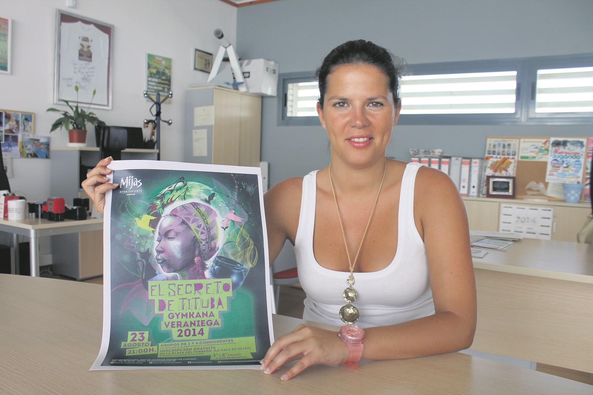 Mijas, 12 de agosto de 2014.- La concejala de Juventud en el Ayuntamiento de Miijas, María del Mar Ríos, ha presentado hoy la gymkana veraniega El secreto de Tituba, que se celebrará el próximo sábado 23 de agosto, a partir de las 21 horas, en la plaza de El Torreón de La Cala.