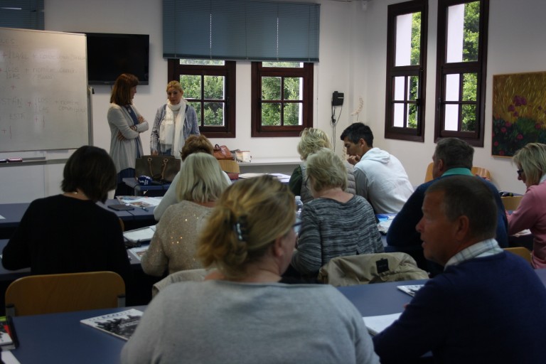 Mijas, 12 de abril de 2016.- La concejal de Universidad Popular, Lidia Moreno, ha estado hoy en una de las clases de español para extranjeros que organiza esta entidad municipal para favorecer la integración de este colectivo en la sociedad mijeña. En este sentido, la edil avanzó que la Concejalía pretende ampliar las clases de esta iniciativa para el curso que viene.
