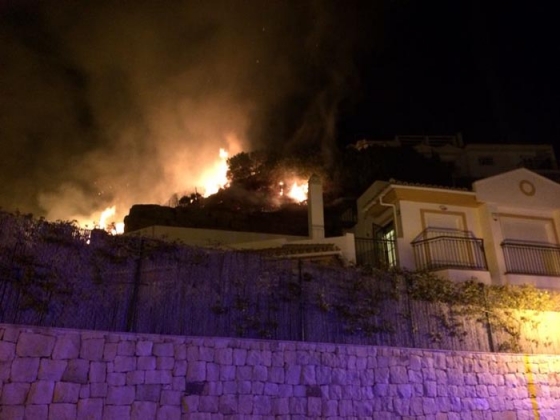 fd8f7bbb057ea330f9a55f11147f1348_LLa voz de alarma saltó sobre las 21:30 horas del miércoles 26, cuando Bomberos Mijas recibió una llamada avisando de un fuego en la parte alta de la Urbanización Riviera del Sol. Hasta este punto, se desplazaron dos camiones de extinción de incendios, así como una cuba. A pesar de la escasa visibilidad, fuentes del cuerpo de Bomberos calculan que la superficie afectada, matorral y monte bajo, podría rondar los 6.000 metros. Sin embargo, pese a que las llamas se han acercado bastante a algunas viviendas, al parecer, no ha sido necesario realizar ningún desalojo. Finalmente, el fue extinguido alrededor de las 22:15 horas, aunque los profesionales del Servicio de Extinción de Incendios y Salvamento de Mijas  permanecieron en la zona realizando labores de refresco.