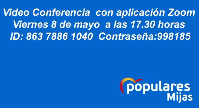 Los populares han querido poner de manifiesto que es una reunión pública y abierta a todos, es muy sencillo poder participar en la reunión que han convocado a través de la plataforma Zoom para este viernes 8 de mayo a las 17.30 horas, sólo hay que entrar en la aplicación introducir el número de la ID de la reunión que es 863 7886 1040 y la contraseña es 998185.