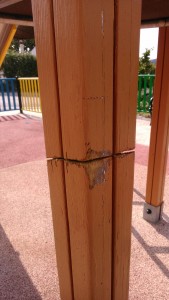 Operarios de Servicios Operativos se han encontrado esta mañana un corte en un pilar de uno de los columpios, que ya ha sido reparado
