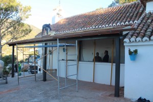 Servicios Operativos ultiman ya las obras de construcción de una cubierta de quince metros cuadrados, que protegerá a los vecinos de las inclemencias del tiempo durante la fiesta de San Antón