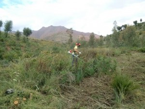 Una cuadrilla de cuatro trabajadores lleva operando en la zona dos semanas eliminando mimosas o pequeños eucaliptos, que perjudican al crecimiento de ejemplares autóctonos