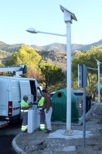 El Ayuntamiento instala dos farolas solares en una zona contenedores de urbanización Las Lomas de Mijas