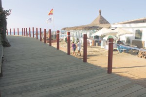 Esta semana han empezado a colocarse las primeras tablas y barandillas que conformarán el camino en uno de los cuatro tramos en los que está dividida la obra, que marcha al ritmo esperado