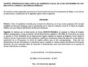 C’s y PSOE aprobaron una oferta de empleo público pese a contar con un informe desfavorable de la Intervención Municipal