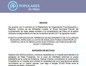 Salen adelante las mociones del PP instando a la Junta a que construya el hospital en Las Lagunas e implemente urgencias en La Cala