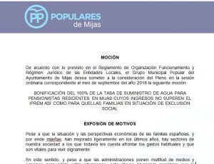 Los populares han llevado una moción para plantear a la Junta unos terrenos para construir el hospital Fuengirola-Mijas y otra para que el Ayuntamiento asuma el coste de la residencia Se ha aprobado por unanimidad la moción que plantea bonificaciones en la tasa de agua para pensionistas con bajos recursos y familias en situación de…