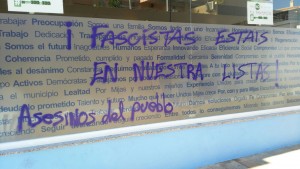 El PP pone en conocimiento de la Guardia Civil las pintadas amenazantes que han aparecido hoy en la fachada de la sede