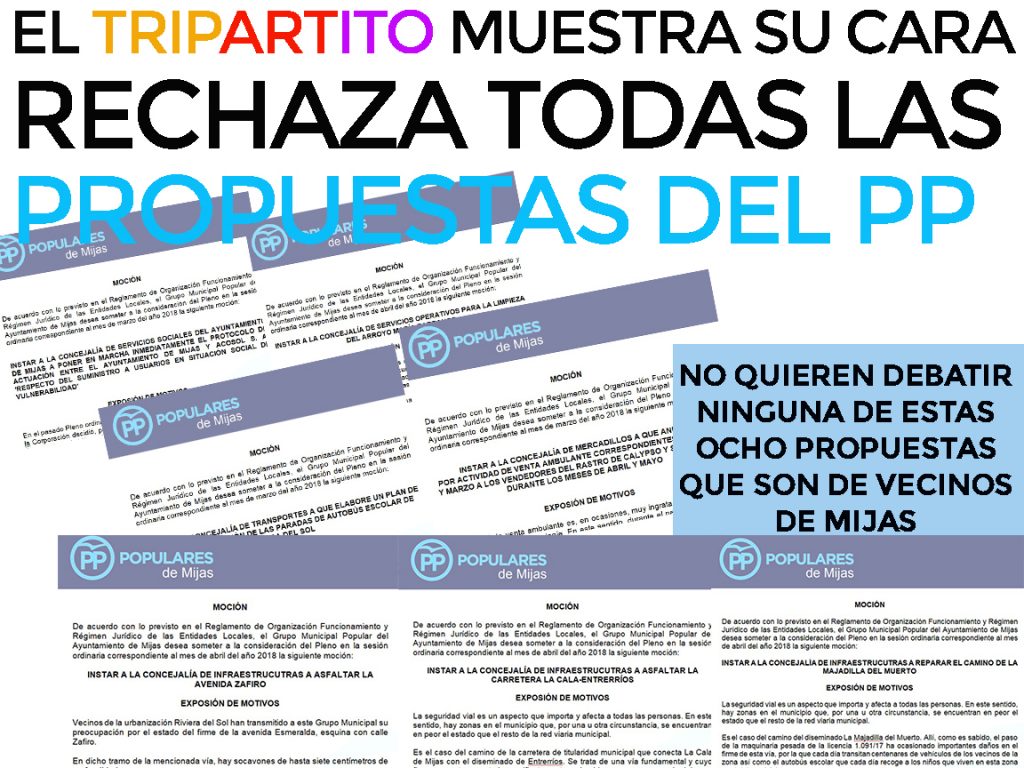 Todas las mociones populares rechazadas son demandas de los propios vecinos y que sólo buscan dar soluciones a los problemas sociales o de infraestructuras que sufren El tripartito ha mostrando su verdadero talante antidemocrático durante los dos últimos plenos ordinarios al rechazar el debate de todas las propuestas del PP